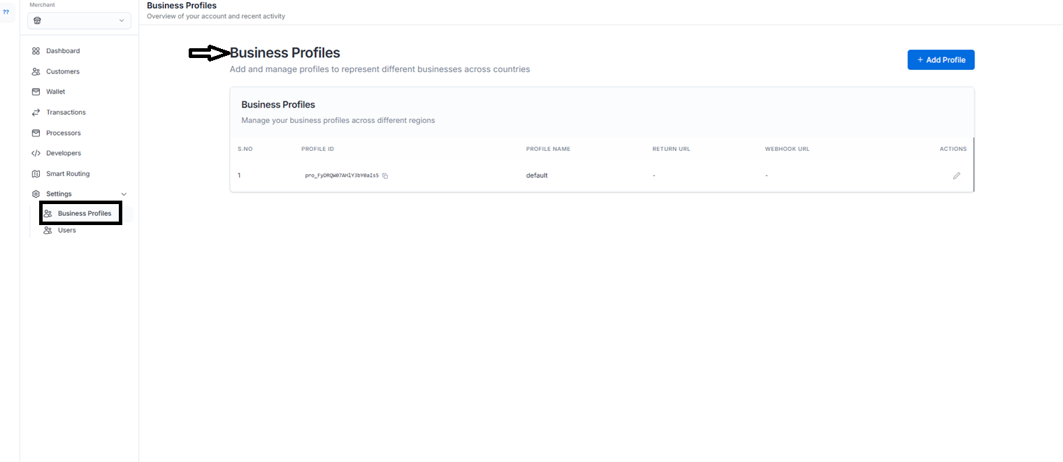 You’ll see a section that looks like this:- Business Profile (currently shows “default”)